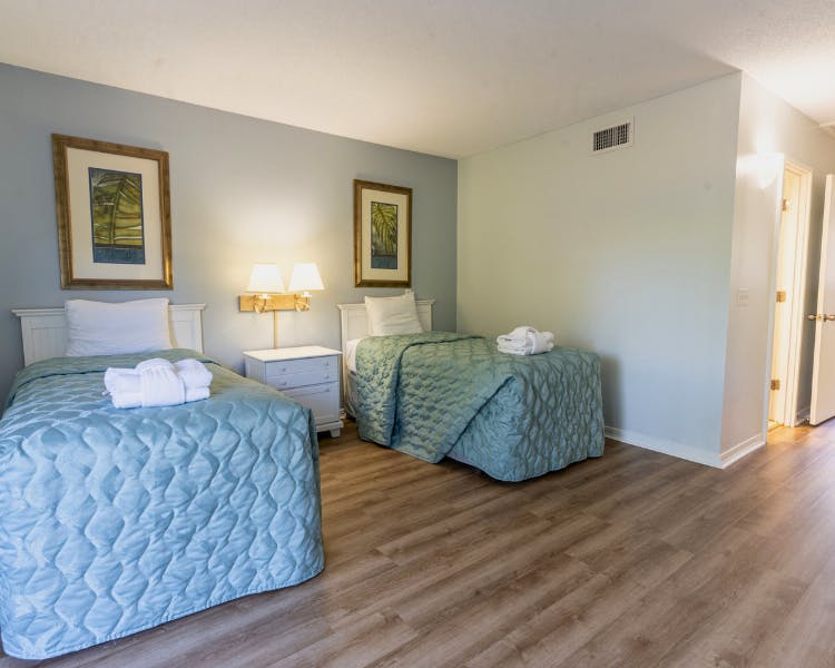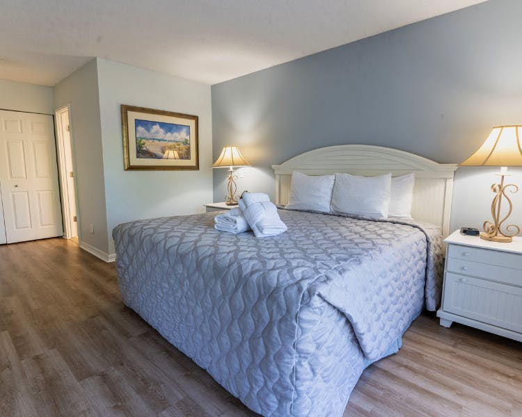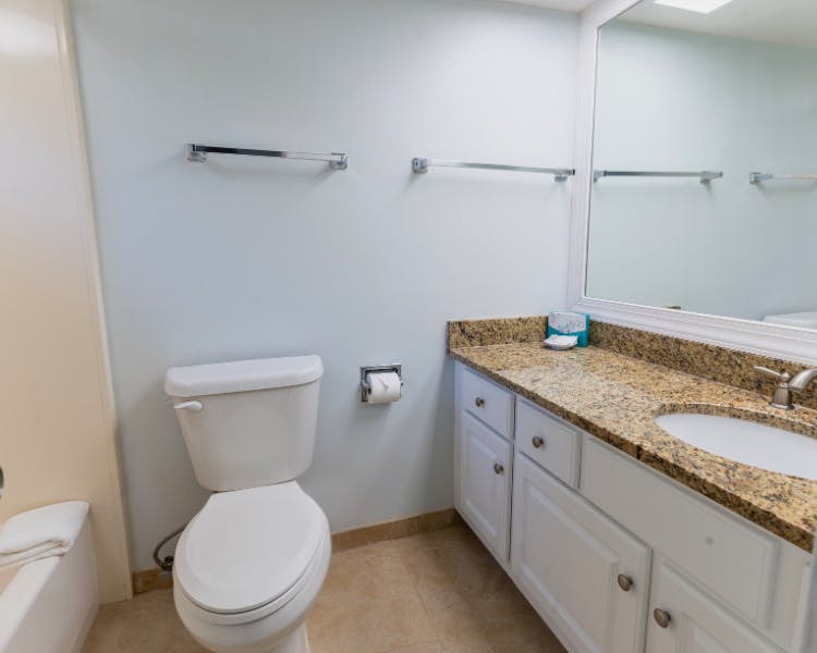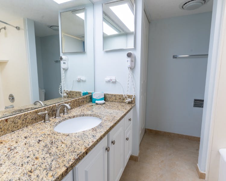 The first-floor master suite offers a restful haven with a plush king bed and a stunning frameless step-in shower in the ensuite bathroom, all accented by luxurious granite finishes. Upstairs, you’ll find two additional bedrooms: one with a king bed and another with two twin beds. Both bedrooms feature private balconies overlooking the tranquil lagoon, providing a peaceful retreat to soak in the natural beauty.